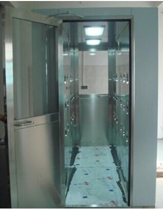 2、系統自動控制運行,雙門電子互鎖,并設有光電感應器,單向通道風淋室,從非潔凈區進入,關門后紅外線感應有人就吹淋,吹淋后入門鎖閉,只能從出門走出風淋室;